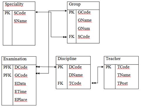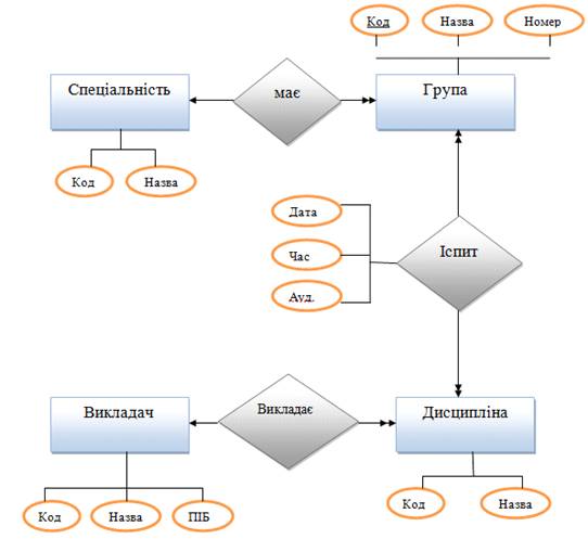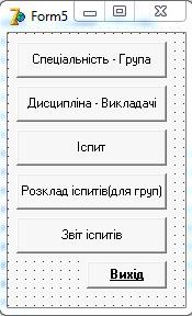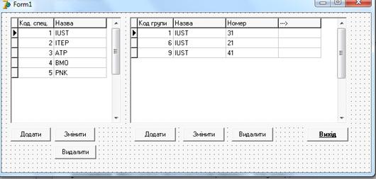 та коди спеціальностей, груп, дисциплін, прізвища викладачів. Сформувати