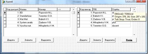 Форма Дисципліна - Викладачі