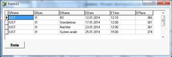 GName, GNum, DName, EData, ETime, EPlace ';.Query1.SQL.Clear;.Query1.SQL.Add(sql_text);.Query1.Open;;