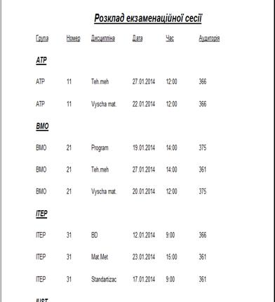 Результат формування розкладу: