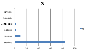 таким чином: 83,9 % - українці, % - болгари, 2,9 % - росіяни, 1,9 % -