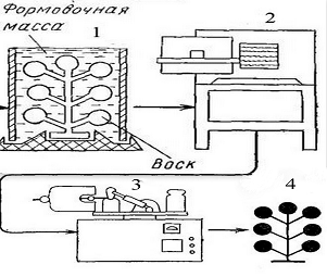опоку и вакуумирование (1,5 мин). Через 2 часа прокалка в печи.