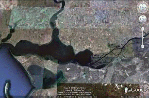 результате которых прослеживается течение - струя реки, вплоть до впадения его