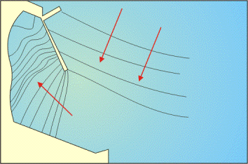 основном зависит от рельефа морского дна, контура и рельефа суши в данном