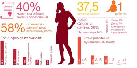 руководящую должность более 5 лет). Она хорошо образованна: 40% опрошенных
