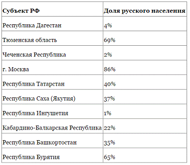 Ямало-Ненецкого автономных округов (доля русского населения - 63,5% и 59,7%