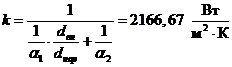 F = Q/(k·∆T) = 1200/(2166,67·5) = 0,098 м2