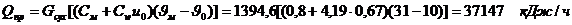 =Gсух*[(Cm+Cw*U2)*(ϑ2-ϑm)+(uk-u2)*(i0+cn*i2-cw*ϑm)+(uk-u2)*qокр]=1394,6*((0,8+4,19*0,219)*(31-10)+(0,538-0,219)*(2500+2*172,64-4,19*31)+(0,538-0,219)*286,5=51260