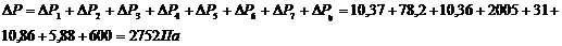 ДP4=лтр**Hтр/Dтр*(1-ч)*смwм2/2=0,024*1,174/0,77*(1-0,0020)*1500*4,942/2=2005 Па