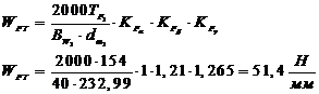 Тогда удельная расчётная окружная сила ([1], с. 25):