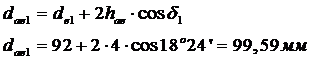 Внешний диаметр вершин зубьев шестерни ([1], 5.5, с. 38):