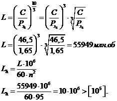 Рассчитаем число часов работы передачи на расчётный срок службы