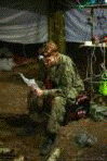 и обслуживают игру организаторы (мастера). Здесь на фото - мастер в камуфляжном