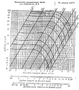 центробежный вентилятор Ц4-68 №8. По диаграмме определяем частоту вращения
