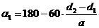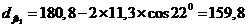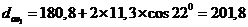 вала. Из точки пересечения проводим под d1 = 22° осевые линии делительных