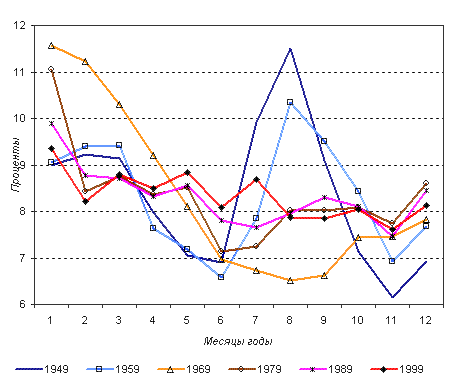и повышение в начале 70-х годов, а затем и небольших темпов снижения в