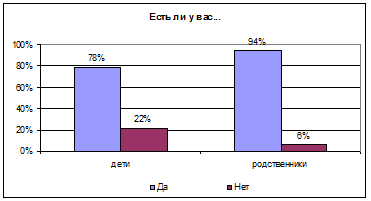 опрошенных - детей нет. Родственники есть у 30 опрошенных (94%), у 2 человек