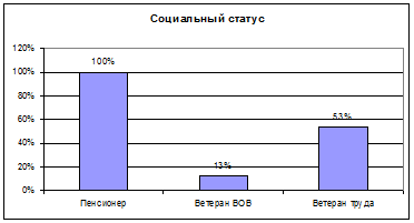 ветеранов ВОВ - 4 человека (17%), ветеранов труда - 17 человек (53%).