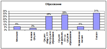 образованием - у 9 человек (28%), незаконченное высшее - у 2 человек (6%),