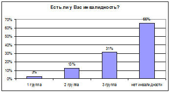 инвалидность 1 группы, у 4 человек (13%) - инвалидность 2 группы, у 10 человек