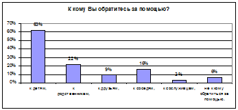 помощью 7 человек (22%), к друзьям - 3 человека (9%), к соседям - 5 человек
