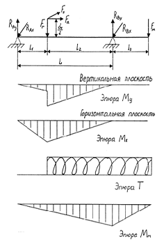= 3503 Н; Fr2 = 1274Н; Fa2 =257 Н; d2 = 204мм.= 6575 Н - сила от