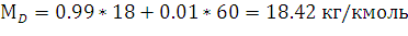 - мольная масса исходной смеси, кг/кмоль;- мольная масса кубового остатка,