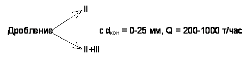 . Грубое дробление - в поперечнике ~ 100 мм.