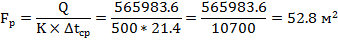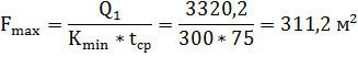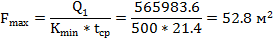 определяем максимальную величину площади поверхности теплообмена. Минимальное