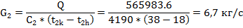 кислоты ) индекс (2) для холодного теплоносителя (вода). Определяем расход