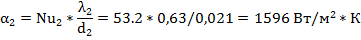 коэффициент теплоотдачи от горячего теплоносителя к стенке,