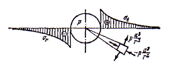 радиальное напряжение в любой точке равно окружному (рис.11) и при отсутствии