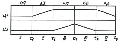 наклонные участки означают движение выходного звена двигателя, горизонтальные -