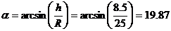 sin α = 25 sin(20)=