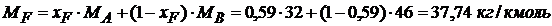 низкокипящего и высококипящего компонентов, соответственно, кг/кмоль.