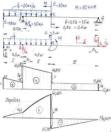 максимальним згинаючим моментом Ммах=МК=64,687кН*м буде на другій ділянці в т.