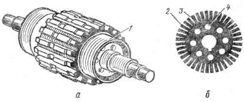 знак «+», а до щітки «в» «-», то в обмотці якоря з’явиться струм. В результаті