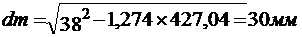 де m - величина подачі при прокаті, що дорівнює 10 мм;