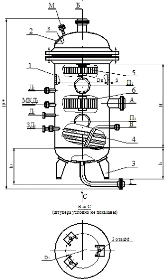 - корпус, 2 - днище, 3 - опора, 4 - подогреватель, 5 -