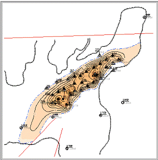 расположенный в 15 км к западу от площади работ. К юго-востоку от месторождения