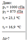 температурами t1 і t2. Яка буде температура суміші при тиску р, гПа.