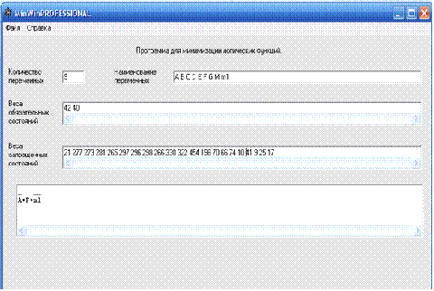 рис.10 Результат минимизации в программе MINWIN