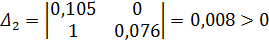 як бачимо всі коефіцієнти більші нуля. Складемо визначники Гурвіца: