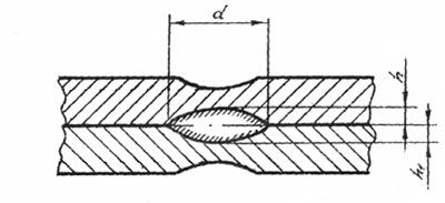 больших вмятинах от электродов, разрывах и трещинах кромки нахлестки, выплеске