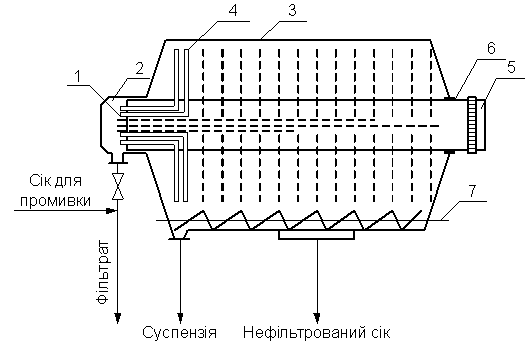 - 0,20 МПа. Сік проходить через тканину всередину секторів і виводиться через