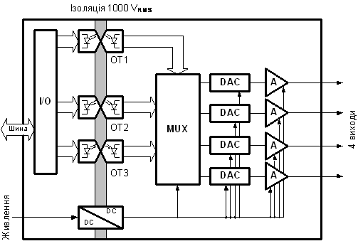модулів є спосіб під’єднання до них вхідних та вихідних ланцюгів. Використані в