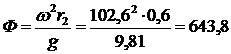 - наружный радиус барабана, 600 мм = 0,6 м- частота вращения барабана, 980