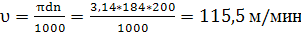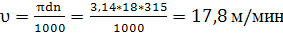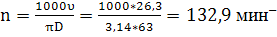Определяем скорость резания υ в м/мин, число оборотов шпинделя n в мин-.