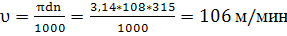 Принимаем уточненное число оборотов по паспорту станка n=315