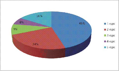 распределена по курсам следующим образом: 1 курс (5 учебных групп) - 85